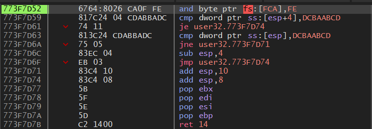 401097 주소에서 4010D4 주소로 점프하지 않고, 401099 주소에서 40109C 주소로 점프한다.