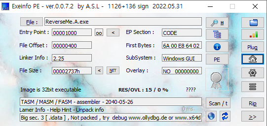 ReverseMe.A 분석