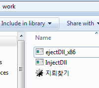 프로그램 실습 시 주의 : ejectDll_x86 프로그램을 64bit 환경에서 실행하면 권한 설정 함수인 SetPrivilege() 함수 부분에서 에러가 발생한다.