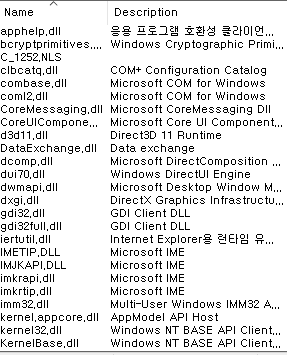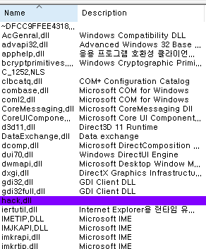 // TH32CS_SNAPMODULE 파라미터를 이용해서 지뢰찾기 프로세스에 로딩된 DLL 이름을 얻음