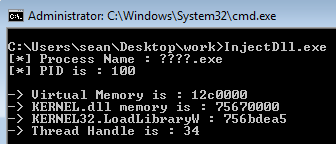 즉, 스레드 함수로 FreeLibrary() 함수를 지정하고 스레드 파라미터에 DLL 로딩 주소를 넘겨주면, 결국 대상 프로세스에서는 FreeLibrary() API가 성공적으로 호출된다.