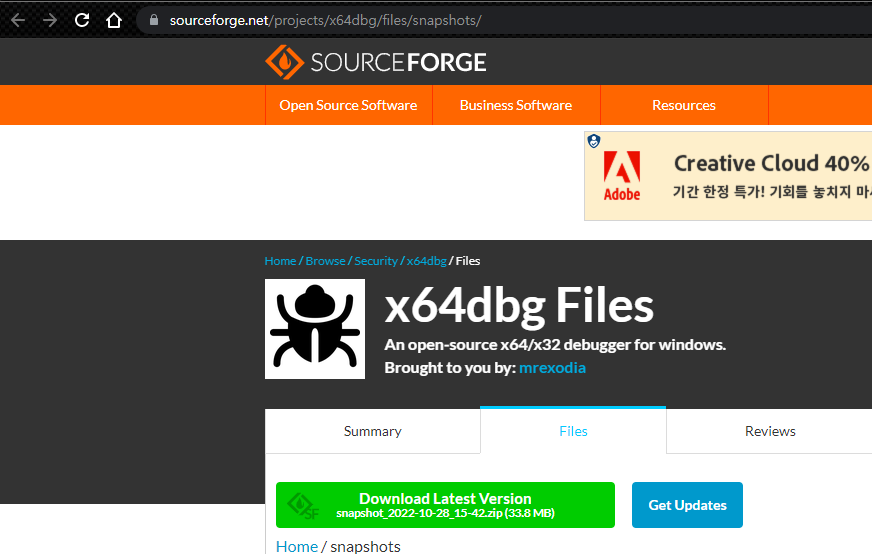 "Download Latest Version" 버튼을 눌러 Snapshot 형태의 x64dbg를 다운로드한다.