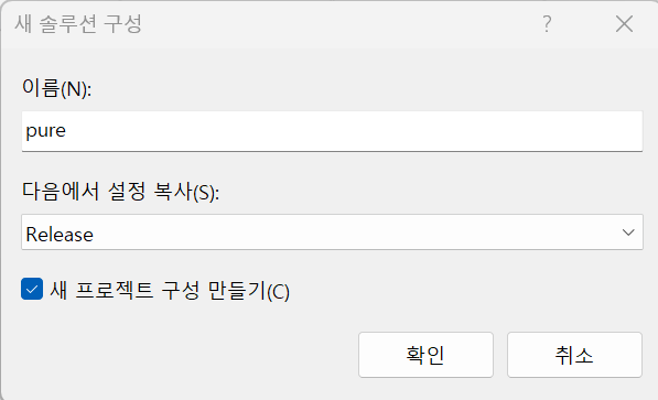 새 프로젝트 생성 후 구성 설정