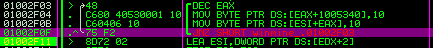 위의 1002F2A 주소부터 1002F37 주소의 루프를 돌면서 10054AA 주소와 10054A0 주소에서 각각 16진수 20씩 뺀 주소에 10을 넣는데, Bh(10진수로 11)번 반복하여 10을 넣는다.
