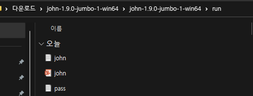 그럼 여러 가지 파일들이 있고 이 중 john.exe 파일도 있다.