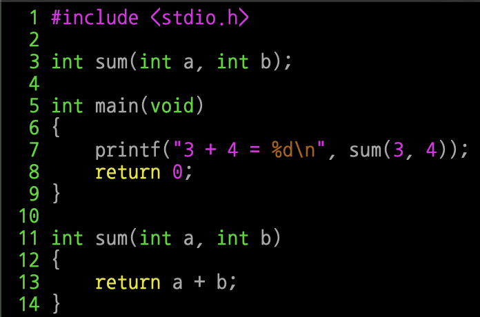 아니면 원형을 쓰지 않고 먼저 정의를 하고 나중에 main() 함수에서 사용해도 된다.