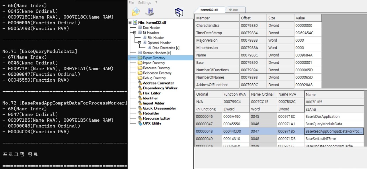 windows 11 64bit 환경에서 PE 파일(Kernel32.dll) EAT 분석 냠냠쓰 : https://sean.tistory.com/208
