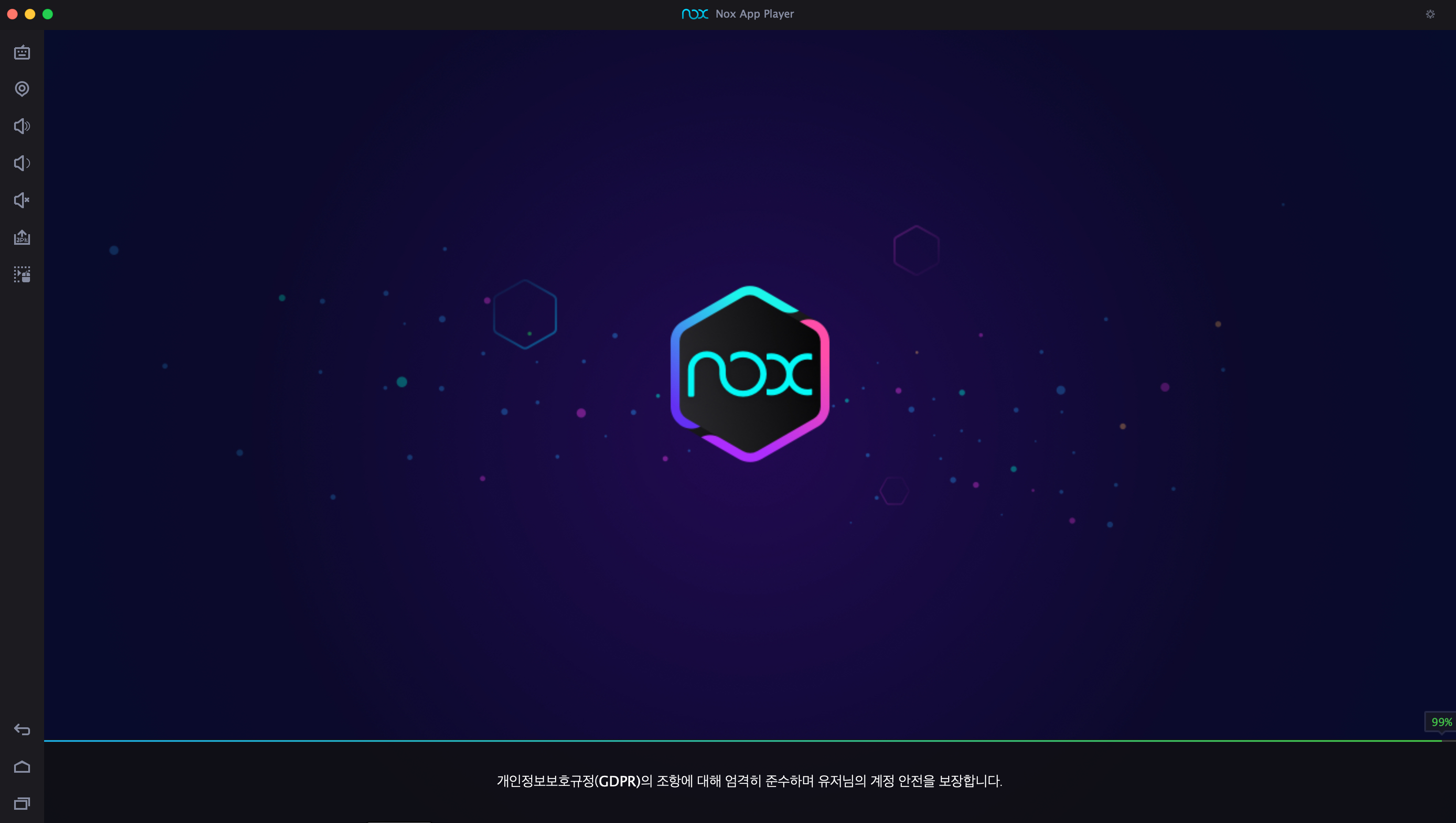 (SIP를 켠 상태에서 터미널을 통해 시도해보니 nox socket을 여는 것에 실패해서 99%에 멈추는 현상이 발생한다.)