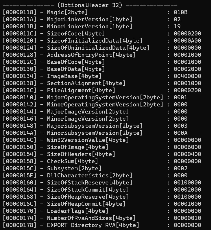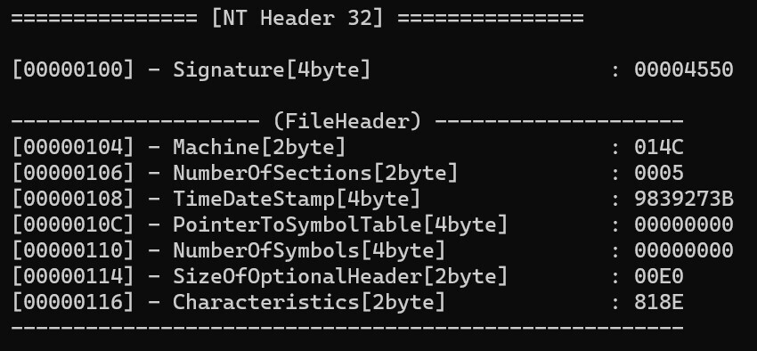 IMAGE_NT_HEADER 구조체의 멤버 IMAGE_FILE_HEADER 구조체 멤버 machine 값으로 구분해도 되지만, 심하게 꼬아버리는 패커들의 경우 해당 멤버의 값을 변조하기 때문에 변조의 가능성이 있고, SizeOfOptionalHeader 멤버의 값으로 구분할 수도 있지만, 해당 멤버의 값 역시 변조의 가능성이 있다.