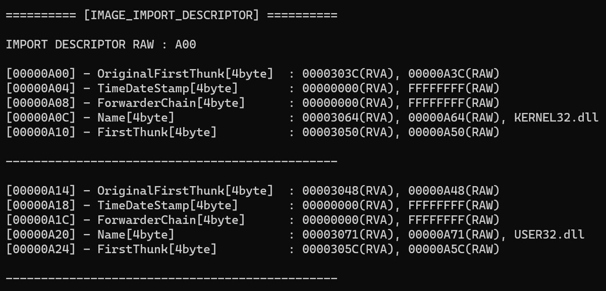 printf("========== [IMAGE_IMPORT_DESCRIPTOR] ==========\n\n");
