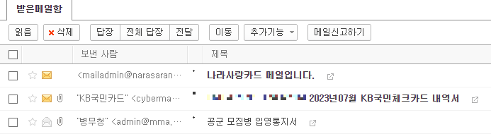 메일 목록 중에 위와 같이 "공군 모집병 입영통지서"라는 제목으로 메일이 왔을 것이다.