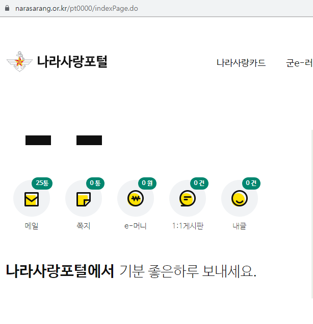 두 번째는 바로 나라사랑포털에 접속하는 것이다.