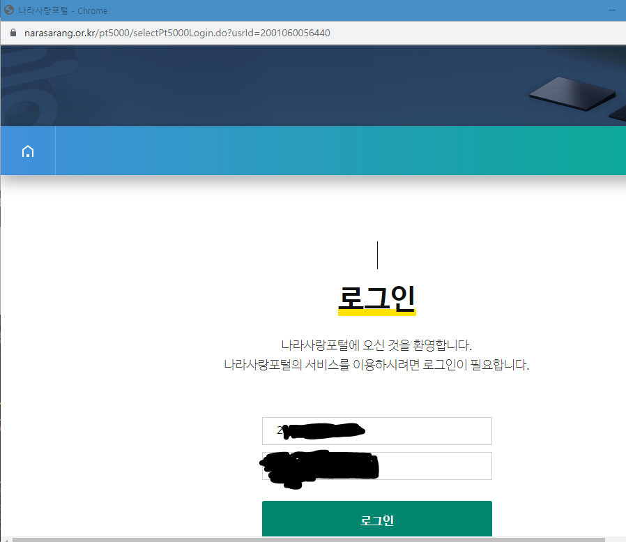 https://www.narasarang.or.kr/pt0000/indexPage.do 에 접속한 후 로그인을 해준다.