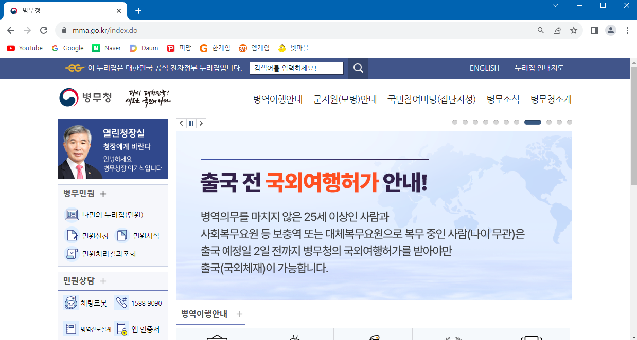 첫 번째는 병무청 홈페이지를 통해 타고 타고 들어가서 나라사랑포털에 접속하는 것이고