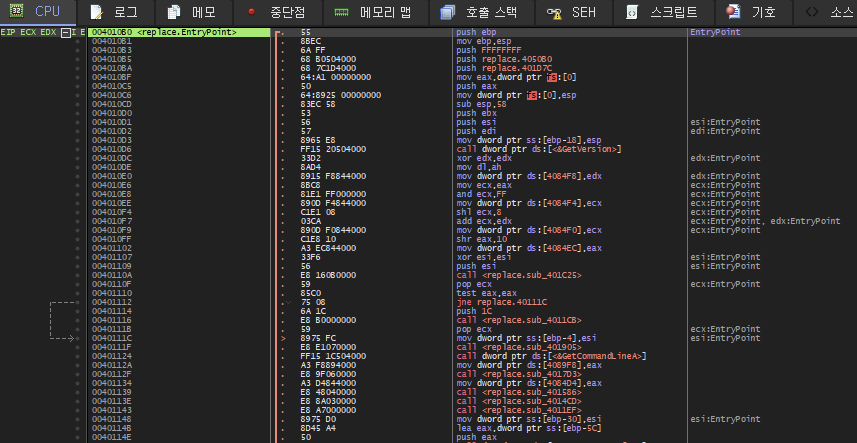 문제 파일을 x32dbg에서 열어보면 위와 같다.