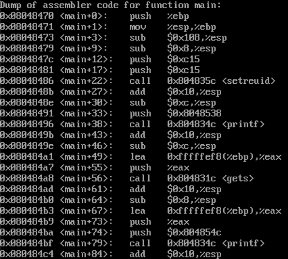 그 간격을 알아내는 가장 간단한 방법은 문자열을 1byte, 2byte 그리고 4byte와 같이 단순하게 문자열을 크기별로 직접 입력하면서 세그멘테이션 오류가 발생할 때까지 문자열을 입력하는 것이다.