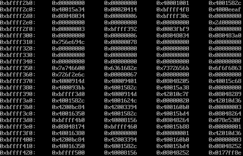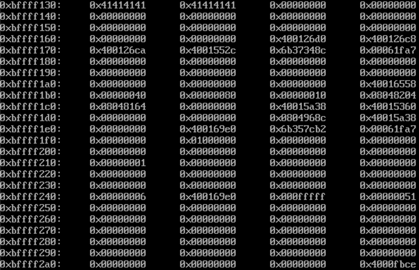 위와 같이 확인용 공격 스크립트를 인자로 주어 실행하고 스택을 살펴본다.