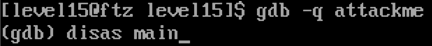 attackme 파일을 디스어셈블한 결과는 위와 같고, 이는 level14의 attackme 파일을 디스어셈블한 결과와도 비슷하다.