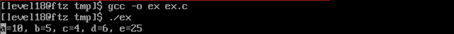 printf("a=%d, b=%d, c=%d, d=%d, e=%d\n", *(pt+2), *(pt+1), *(pt+0), *(pt-2), *(pt-3));