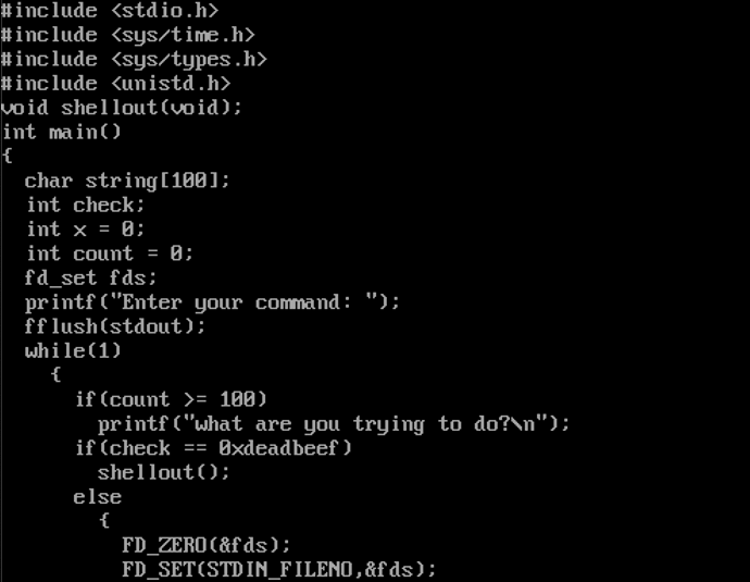 이번 문제는 check 변수의 값이 0xdeadbeef이면, shellout() 함수가 실행돼 level19 권한의 shell이 떨어진다.
