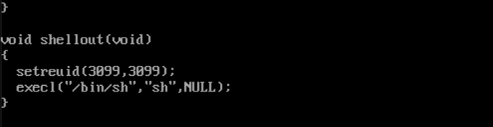 3. check 변수의 값이 0xdeadbeef이면 shellout() 함수를 실행하는데, shellout() 함수는 level19 권한의 배시 셸을 실행한다.