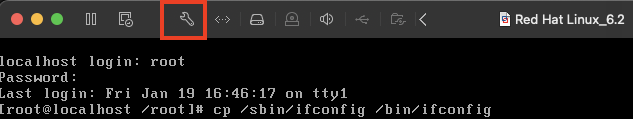 "cp /sbin/ifconfig /bin/ifconfig" 명령으로 /sbin 디렉터리에 있는 ifconfig 유틸리티를 /bin 디렉터리로 이동한다.