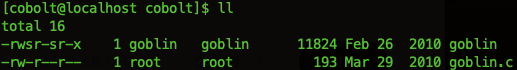 cobolt 계정으로 로그인하여 cobolt 디렉터리 안에 있는 파일들의 목록을 보면 goblin과 goblin.c 가 있다.