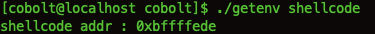 환경 변수 shellcode의 주소는 0xbffffede이다.