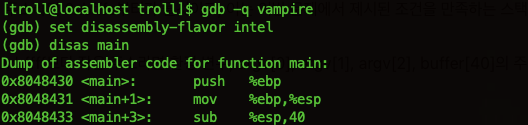 해당 주소를 이용해 공격하면 조건에 만족하므로 vampire의 password를 얻을 수 있다.