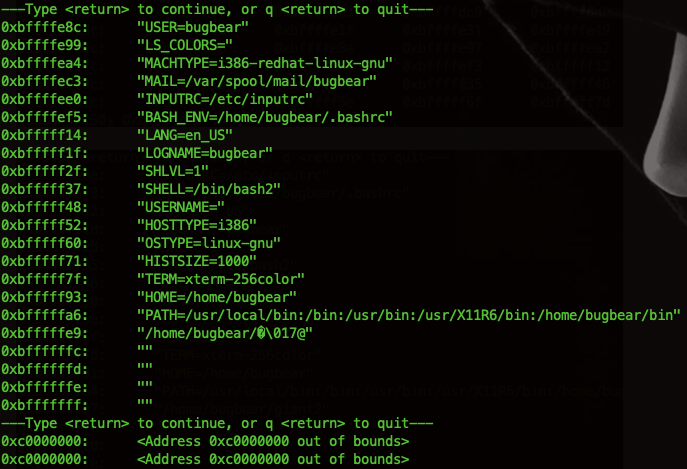 그리고 환경 변수의 포인터는 스택 레이아웃에서 program name 부분 다음에 있는 NULL 부분의 주소를 사용하거나 stack from startup code 전에 있는 envp 부분의 주소를 사용하면 된다.