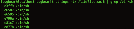 strings -tx /lib/libc.so.6 | grep /bin/sh