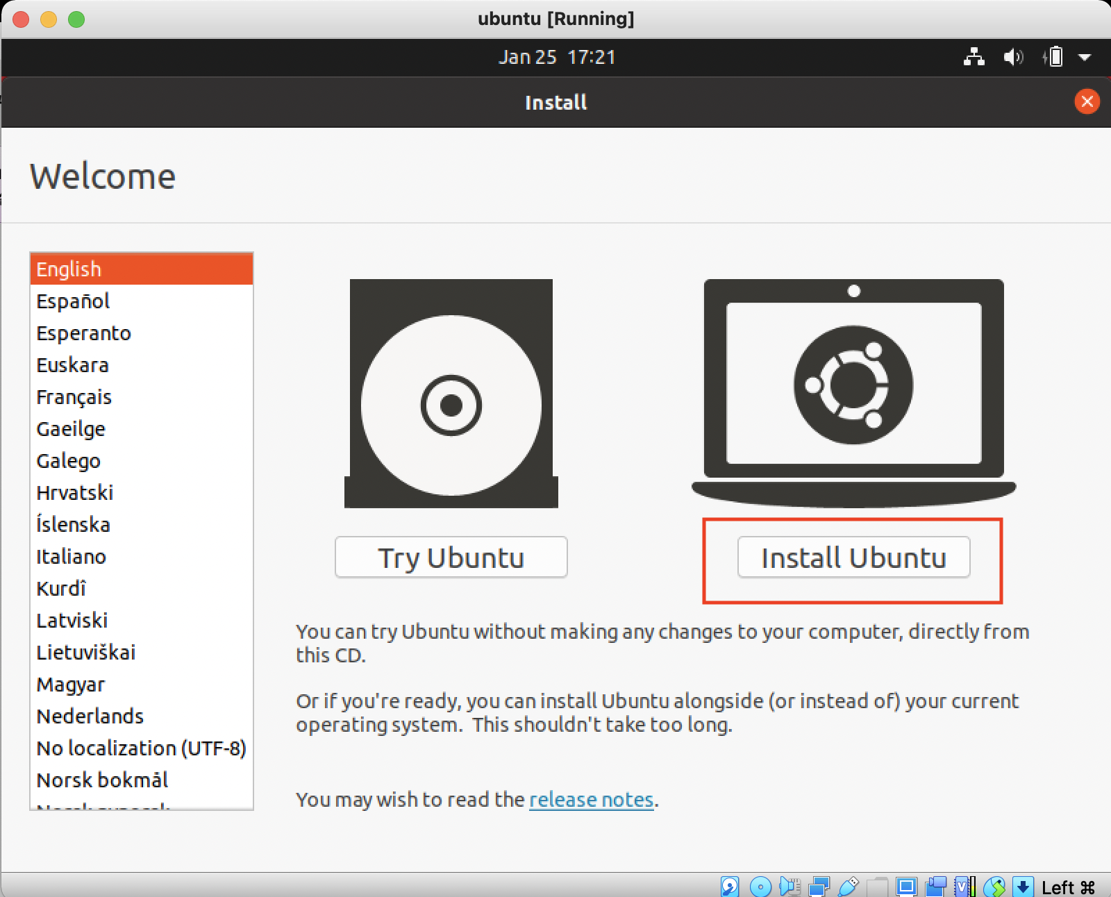 아래의 화면에서 Install Ubuntu 버튼을 눌러줍니다.
