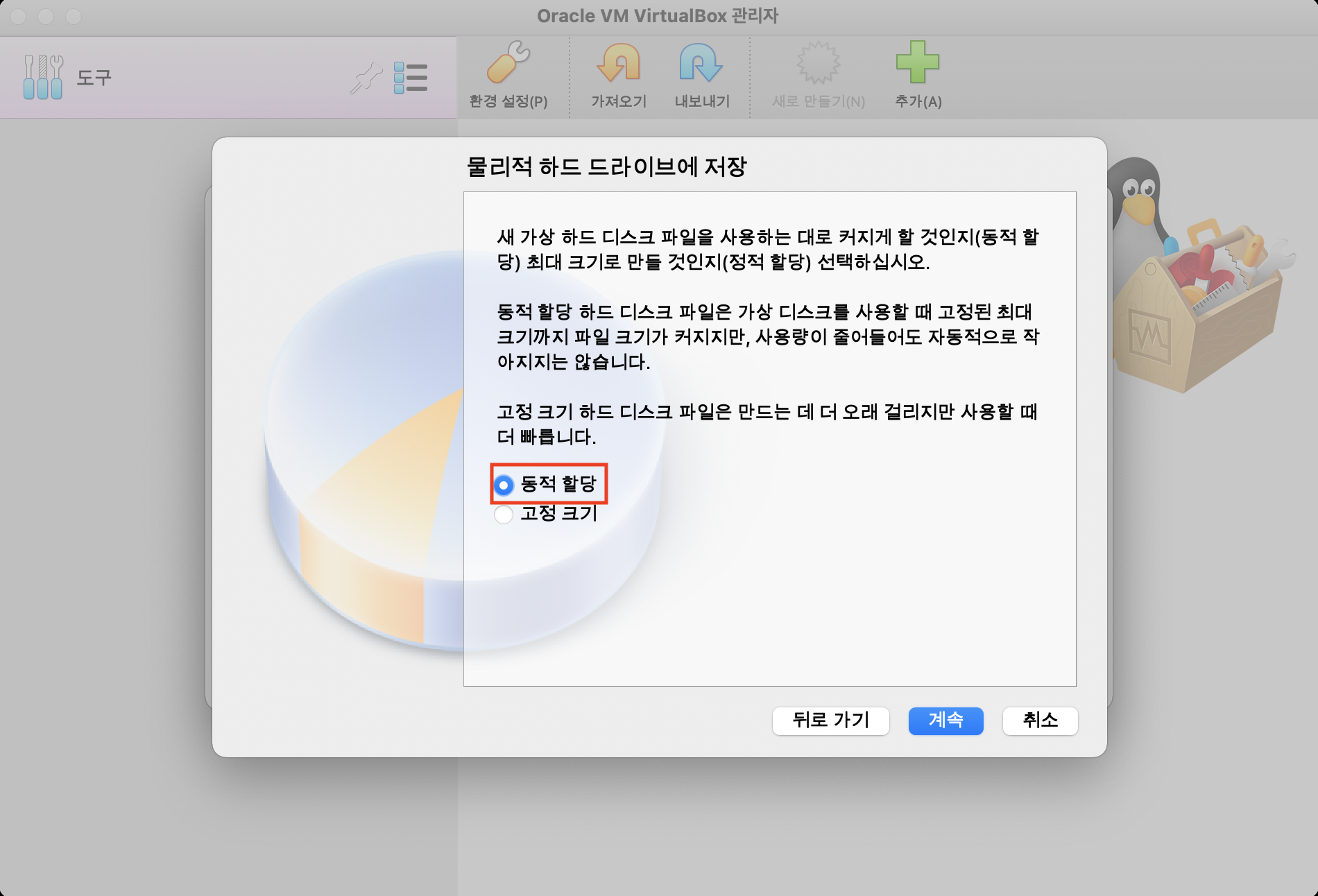 만약 기존에 사용하던 가상 하드 디스크가 있다면 3번째를 선택하면 됩니다.