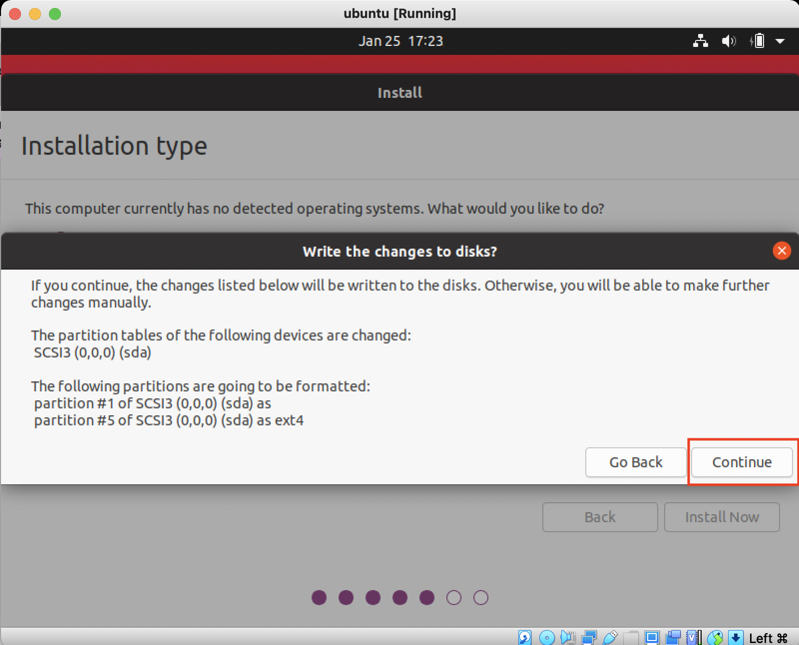 여기서는 기본적으로 설정되어 있는 Erase disk and install ubuntu를 선택한 뒤 Install now를 눌러 진행해줍니다.