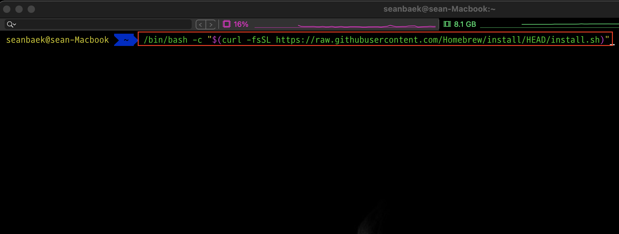 macOS 내에 있는 Terminal에서 아래의 명령어를 입력하여 brew를 설치해줍니다.