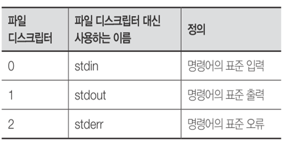 표준 입출력 및 표준 에러에도 리눅스에서는 다음 사진과 같이 파일 디스크립터를 할당하고 있다.