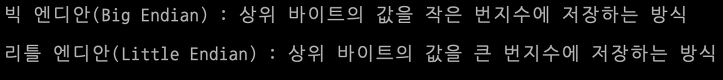 참고로 사용자들이 주로 사용하는 인텔계열 CPU는 리틀 엔디안 방식으로 데이터를 저장한다.