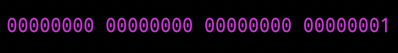 4byte 정수 1을 2진수로 표현하면 아래의 사진과 같다.