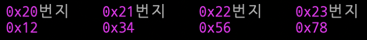 최상위 바이트 0x12가 작은 번지수 0x20번지로 저장된다.