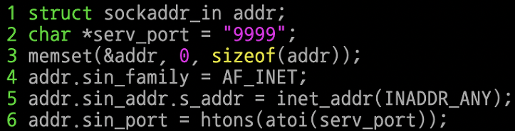 앞서 배웠던 방식과의 큰 차이는 없지만, INADDR_ANY라는 이름의 상수를 통해서