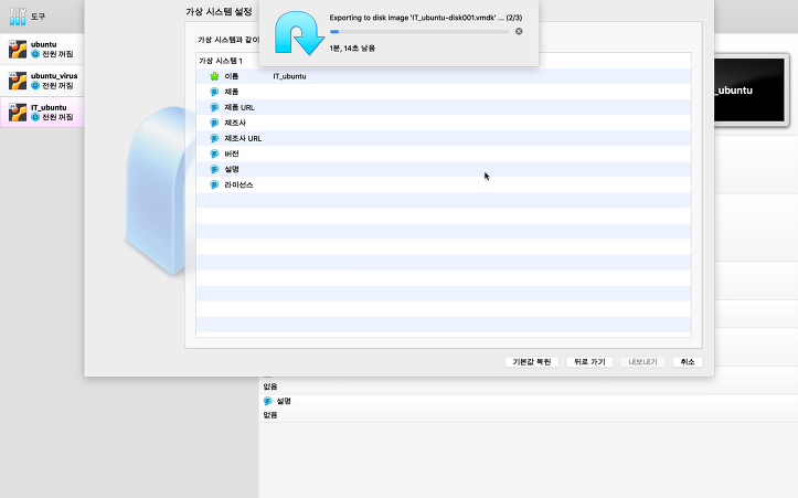 IT_ubuntu의 이름을 가진 가상 머신으로 .ova 파일로 변환할게요